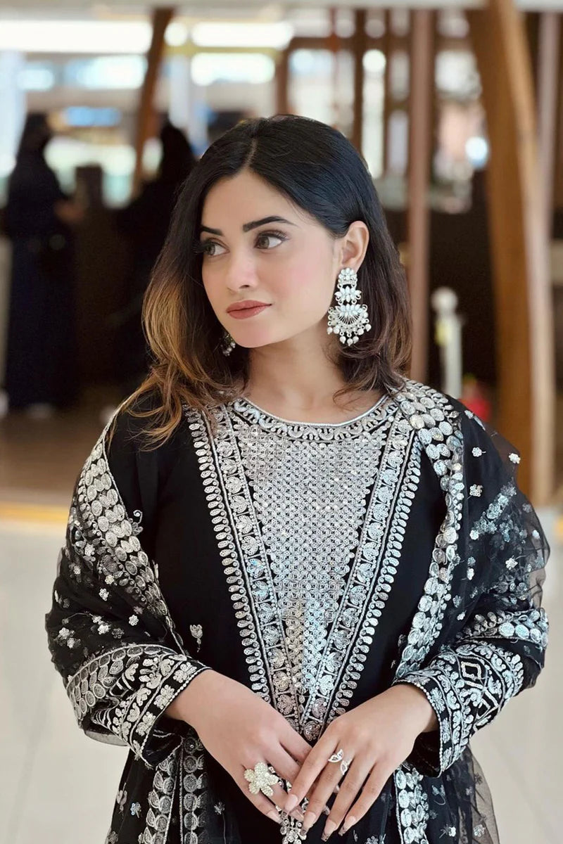 Black Pakistani Salwar Kameez With Heavy Embroidery Dupatta Work